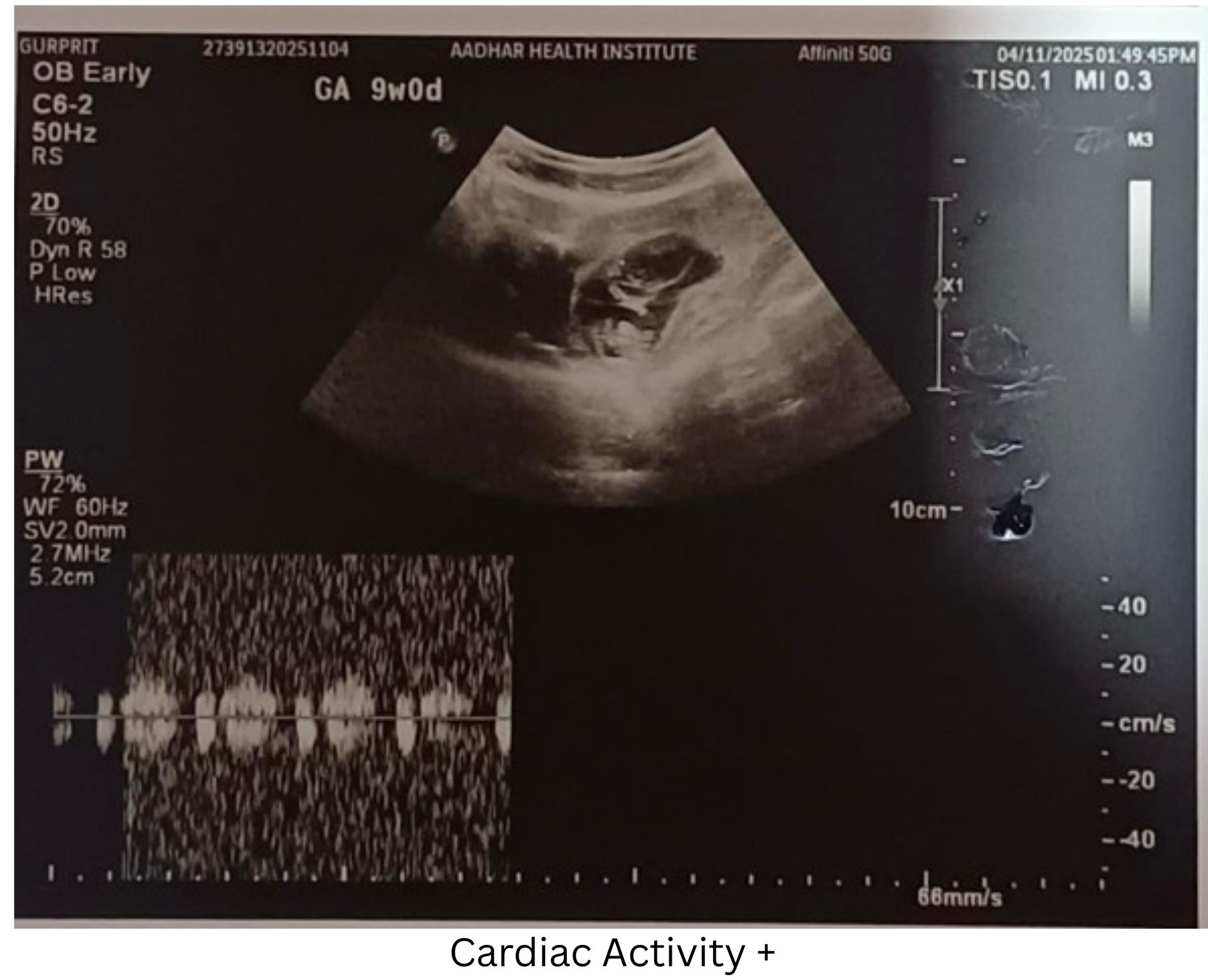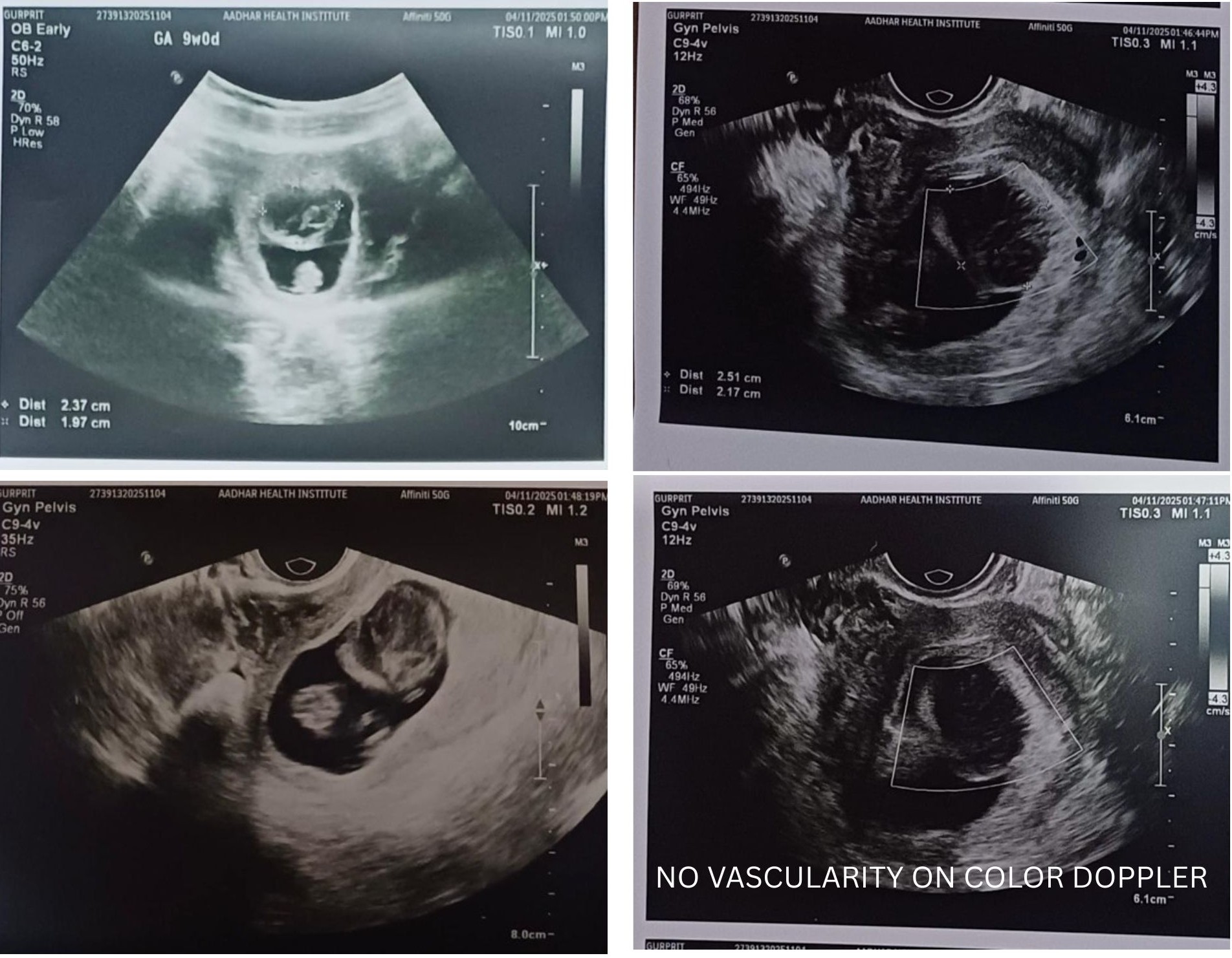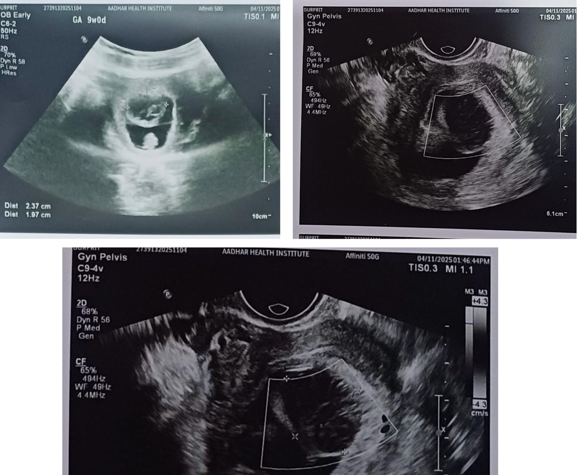 A 28-year-old female presented for a routine early pregnancy ultrasound at 9 weeks of gestation.